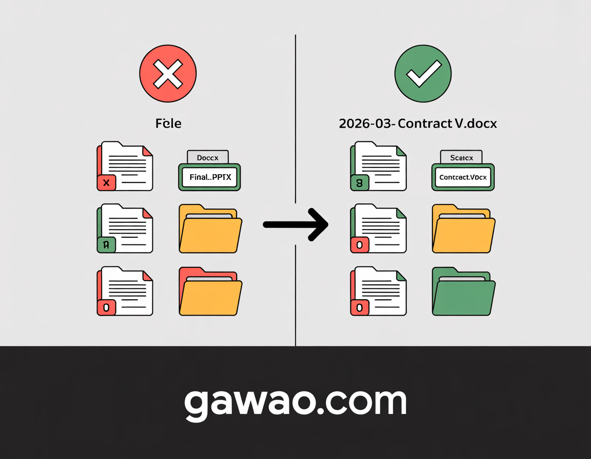 2. ชื่อต้องบอกเนื้อหาได้ทันที ชื่อไฟล์ “document1.docx” บอกอะไรไม่ได้เลย แต่ “2026-03_รายงานยอดขาย_Q1.docx” บอกได้ทุกอย่างในชื่อเดียว