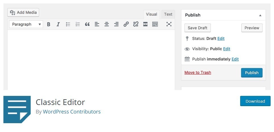 เวิร์ดเพรสตั้งแต่เวอร์ชั่น 5 ขึ้นไปนั้น ได้มีการเปลี่ยน Editor ใหม่ ซึ่งทางผู้พัฒนาเค้าบอกว่าดีกว่าเดิม เร็วกว่าเดิม แต่สำหรับผมนั้นเมื่อได้ลองใช้งานแล้วมันไม่ถนัดจริง ๆ ยังคงยึดติดเวอร์ชั่นเดิม ๆ อยู่ การกลับมาใช้เวอร์ชั่นเดิมกลับไม่ง่ายอย่างที่ควร แต่ก็ไม่ได้ยากเหมือนกัน ใครที่ยังถนัดการใช้งานเวอร์ชั่นเดิม ก็แค่ติดตั้งปลั๊กอิน Classic Editor แล้วก็ทำการ Activate เพียงเท่านี้ก็จะได้หน้าจอ Editor แบบเดิม ๆ กลับมาให้ใช้แล้ว