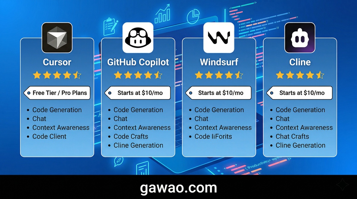 เริ่มด้วย GitHub Copilot ($10/เดือน) สำหรับ Auto-complete ประจำวัน แล้วเสริมด้วย Cursor หรือ Windsurf เมื่อต้องการ Agent ช่วยแก้ไขหลายไฟล์ ใช้ Claude Code สำหรับงานยากที่ต้อง Refactor ทั้ง Codebase